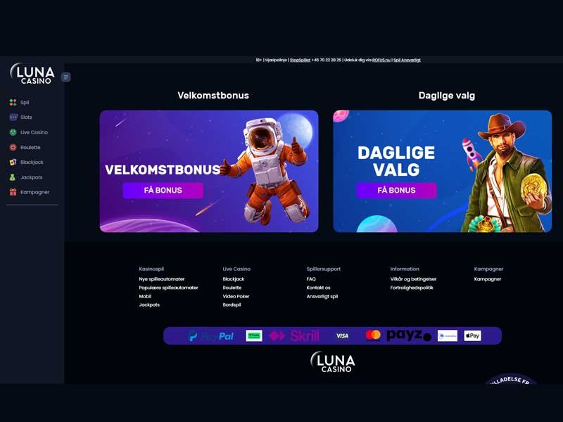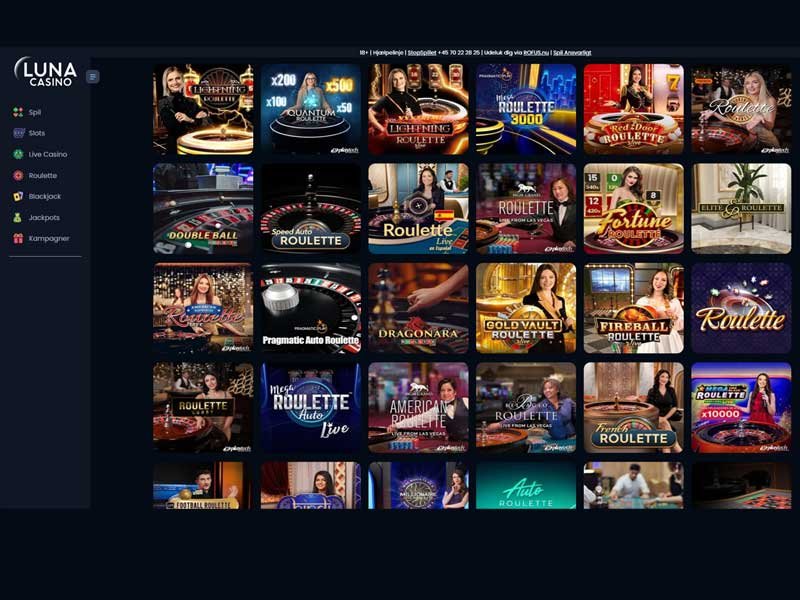 Hos Luna Casino møder man primært europæiske roulette, altså hjul med ét nul. Det er standard på det danske marked, fordi RTP ligger, hvor Spillemyndighedens certificeringer kræver det. Amerikanske dobbelt-nul hjul bruges stort set aldrig i Danmark, og derfor er det heller ikke noget, Luna Casino præsenterer som en central del af udvalget. Fokus ligger i stedet på variationer af det europæiske format, enten med multiplikatorer, lynrunder, hurtige spin eller ekstra visuelle lag.